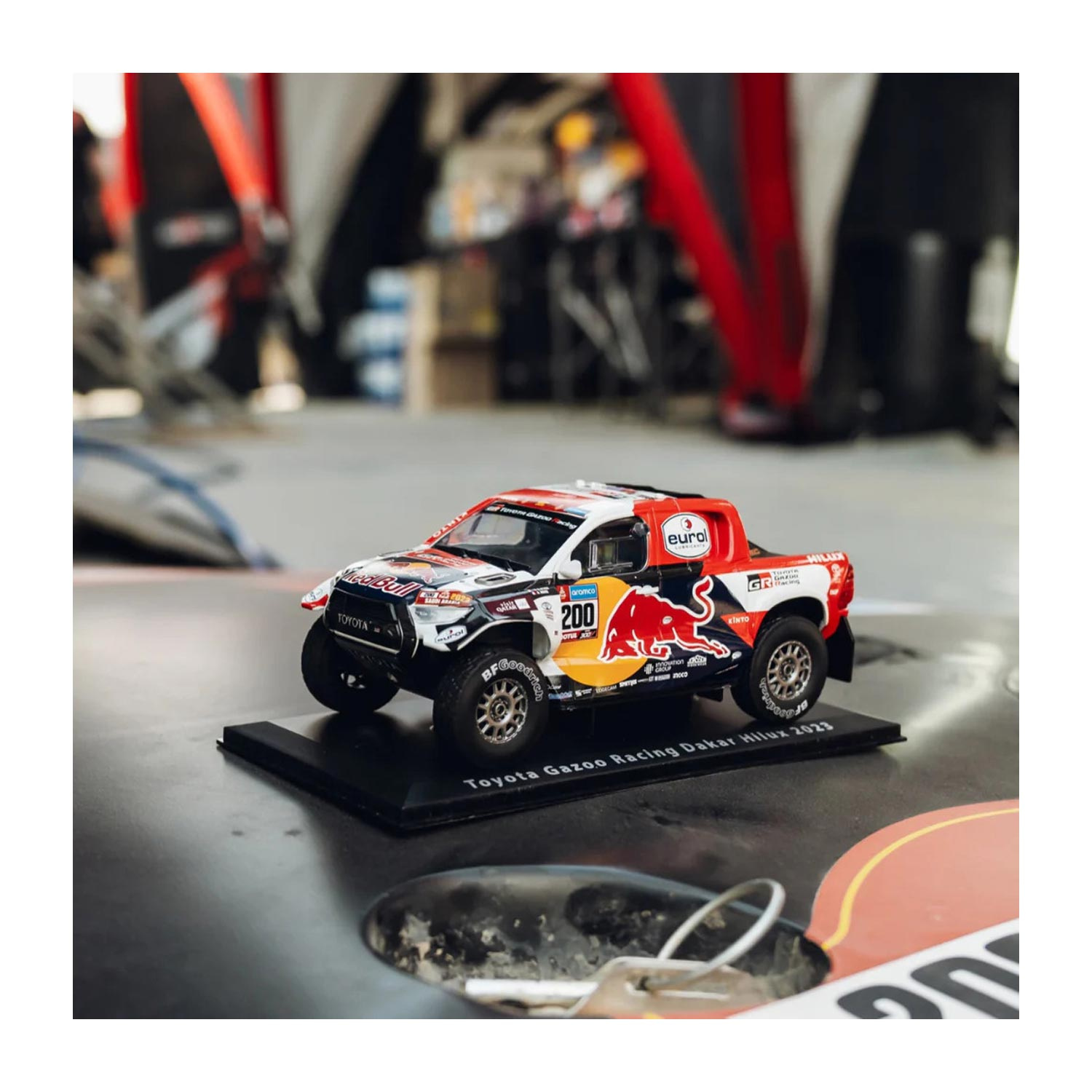 Réplique miniature de la voiture n°200, conduite par le vainqueur du rallye Dakar 2023 Nasser Al-Attiyah