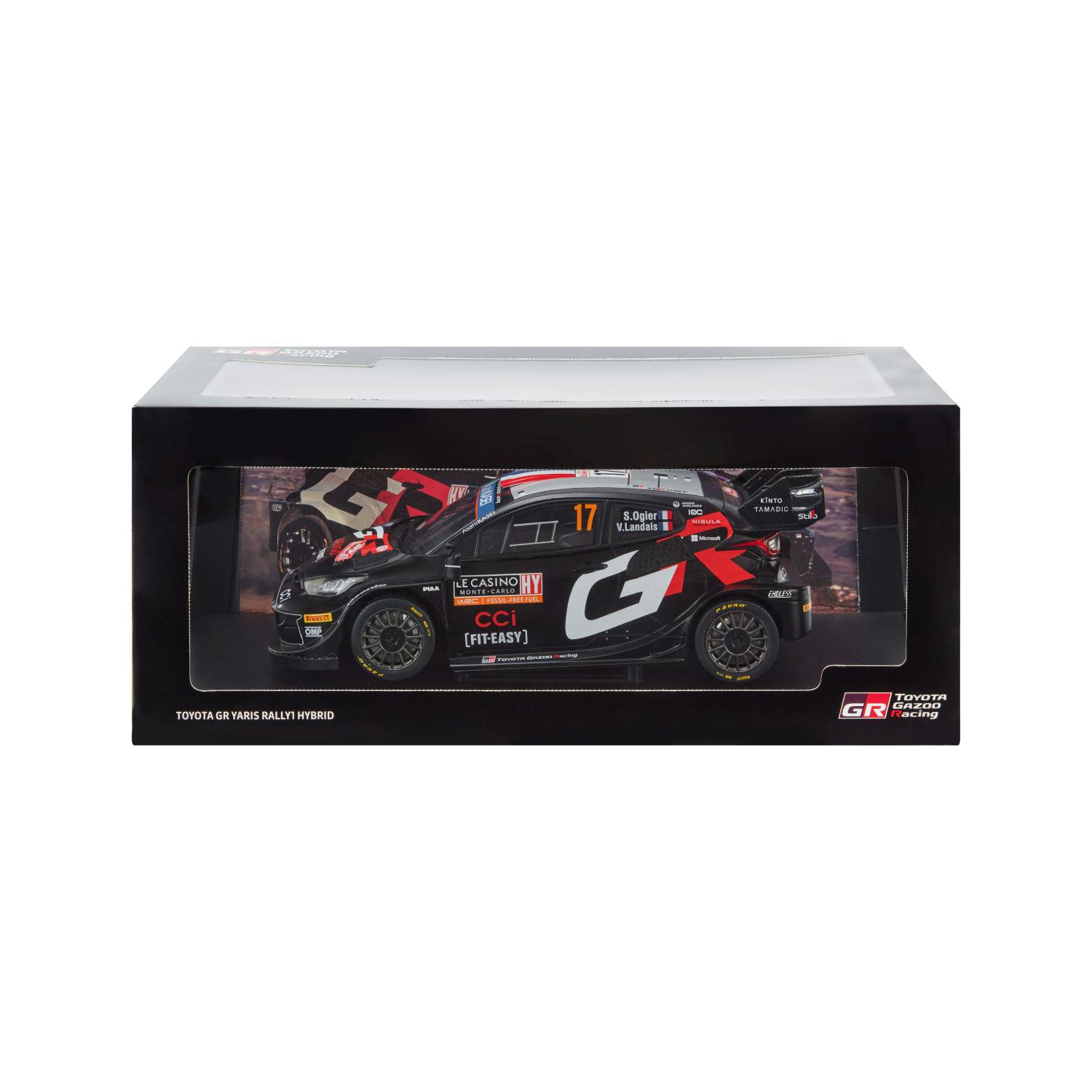 Réplique miniature de la voiture de rallye GR Yaris numéro 17, pilotée par Sébastien Ogier au Rallye de Monte-Carlo